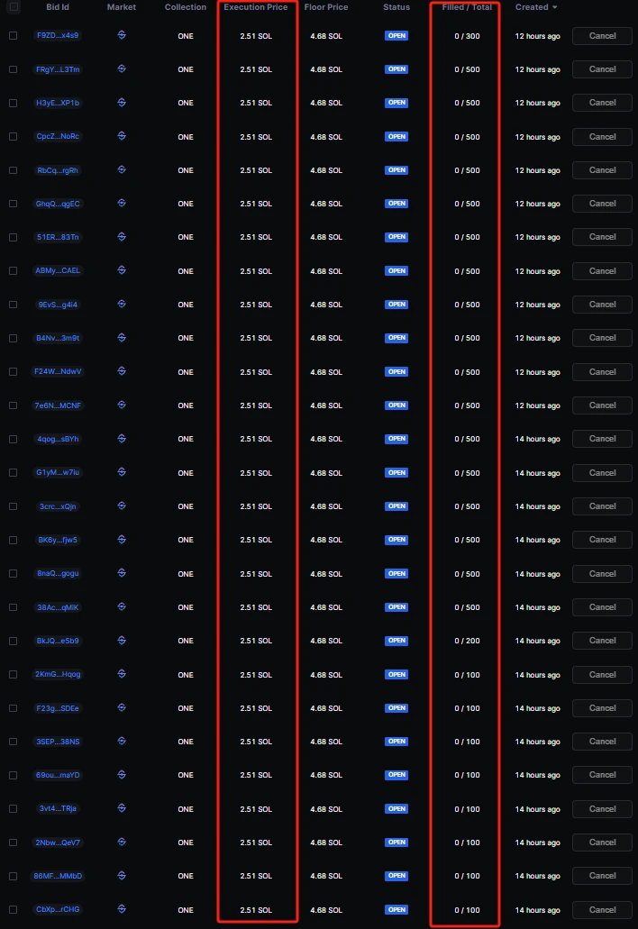 对于 ONE 持有者来说,最关心的问题便是,项目方是否真的拿收到的 SOL 来提供项目流动性?从链上数据可以看出,Analysoor 确实根据承诺将抽奖募集的所有的 SOL 拿来提供 ONE 的流动性。下图为官方公布的募集的钱包,Analysoor 在 2.51 SOL 的价格挂了 9800 个 Offer 单,挂单总价值折合 SOL 近 25, 000 个,目前钱包还剩 51.36 SOL。若看好该项目的后续,价格再次下跌的时候可以关注。