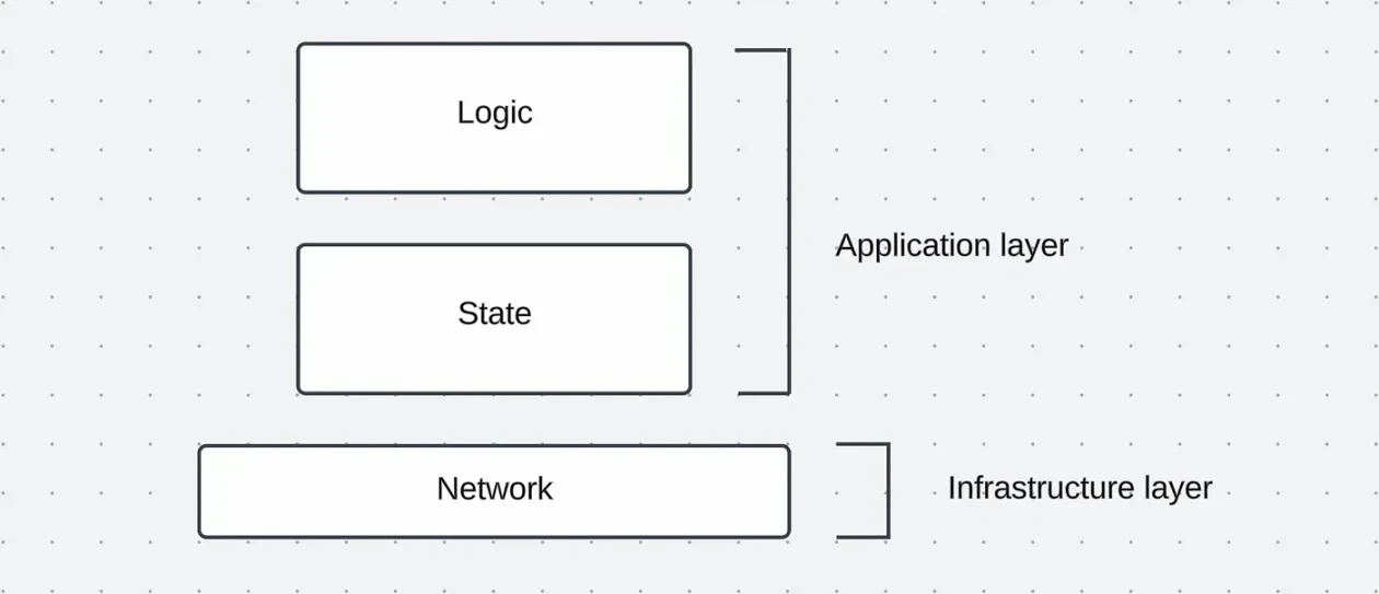 通用区块链存储状态并提供了该状态的逻辑,我们通常将状态称为资产,而将逻辑称为应用。例如,以太坊存储 Ether 和 Dai (状态)等资产,可以在 Uniswap 和 Aave (逻辑)等应用程序中使用。状态和逻辑共同构成了我们所说的应用层。