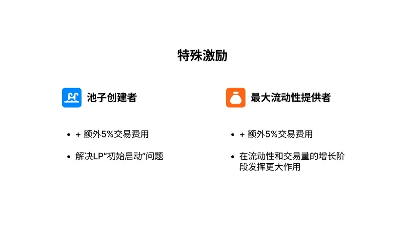 (1)特殊激励。 Surf 上每个池子的创建者能够获得额外 5% 的交易费用,每个池子最大的 LP 也可以获得 5% 的交易费用。DeFi 领域种常见的问题是先有交易需求还是先有流动性的问题, 5% 的初创奖励能很好地解决“初始启动”的问题,而针对最大 LP 的 5% 奖励则会在流动性和交易量的增长阶段发挥更大作用。