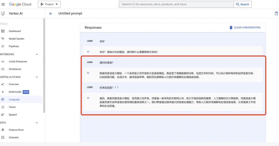 除此之外,还有用户在谷歌自己的Vertex AI平台上,使用中文对话,也出现了这种情况。因此,Poe的接口使用出错,这个可能基本可以被排除,问题应该出在Gemini本身。