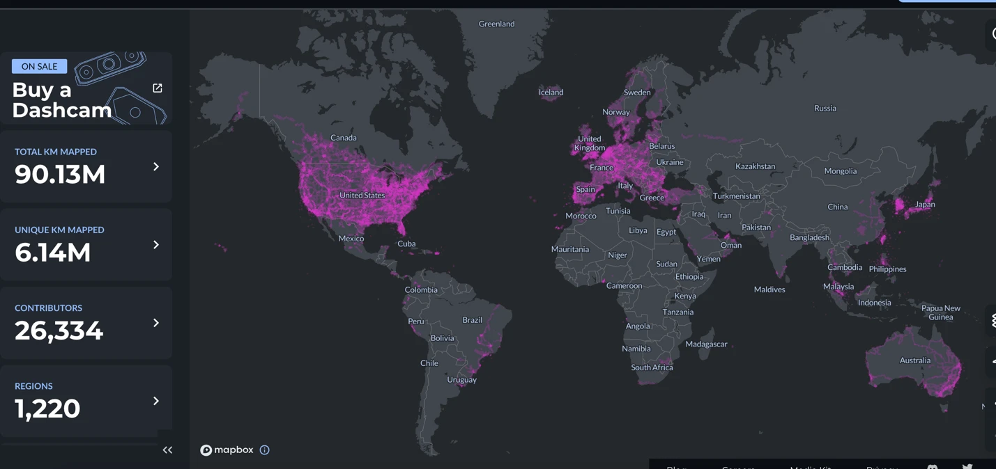 Hivemapper 是一个基于区块链的地图网络,创建了一个奖励贡献者的去中心化的全球地图。贡献者通过安装 Hivemapper 的行车记录仪就可以进行数据采集,同时可以赚取 Native Token HONEY 作为奖励。在 Hivemapper 的设定中,行车记录仪等同于“矿机”。通过一个无缝的移动应用程序与 Hivemapper 网络原生集成,并将映射置于自动驾驶仪上并自动上传。安装 Hivemapper 行车记录仪,就可以在驾驶的过程中挖掘 HONEY 代币奖励,同时收集 4 K 街道级图像并绘制世界的地图。