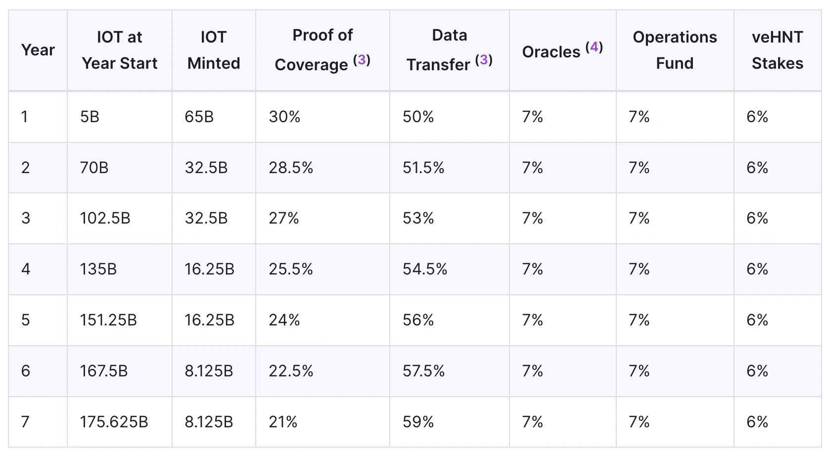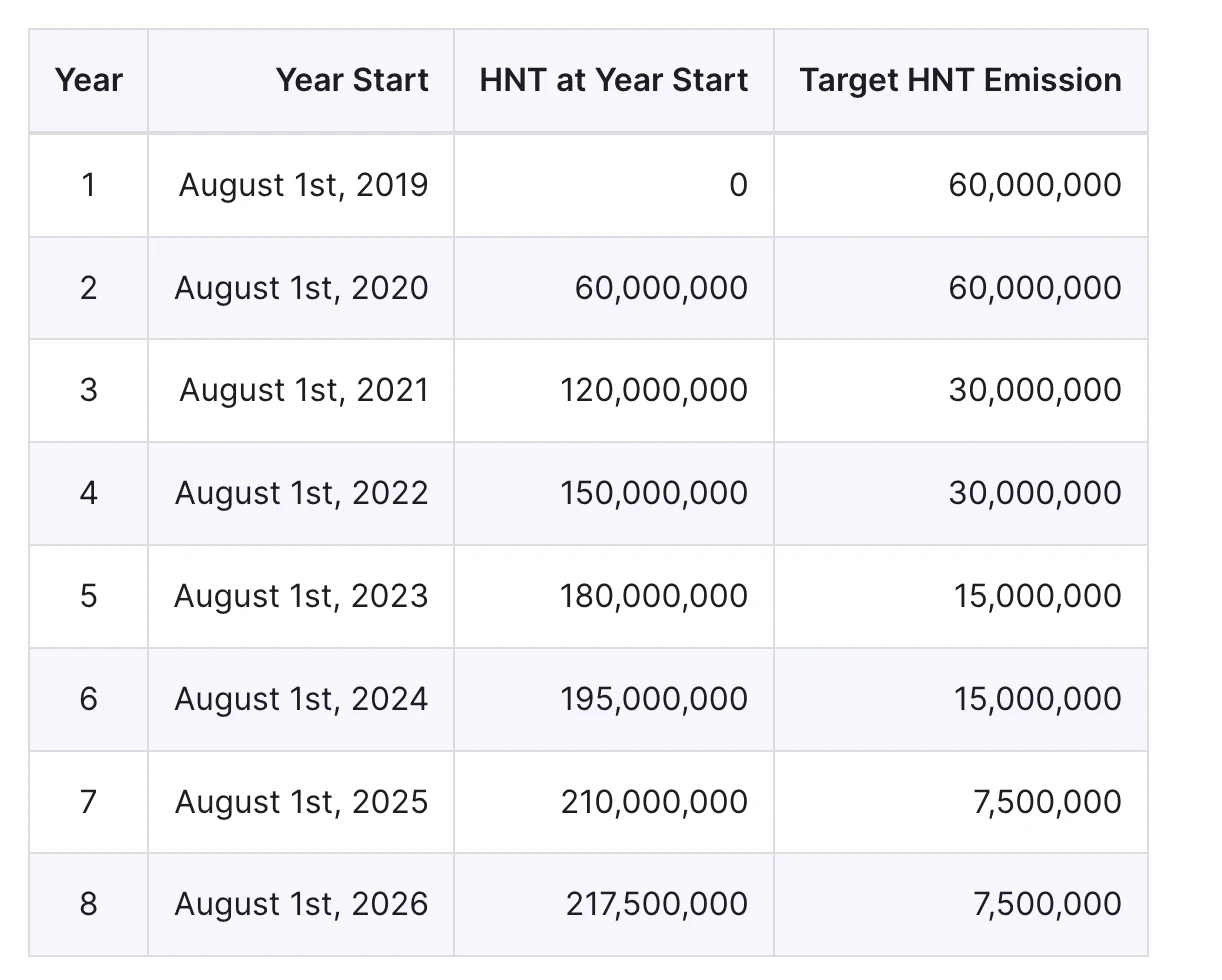 发行计划将每 2 年减半一次,与 HNT 发行减半保持一致。