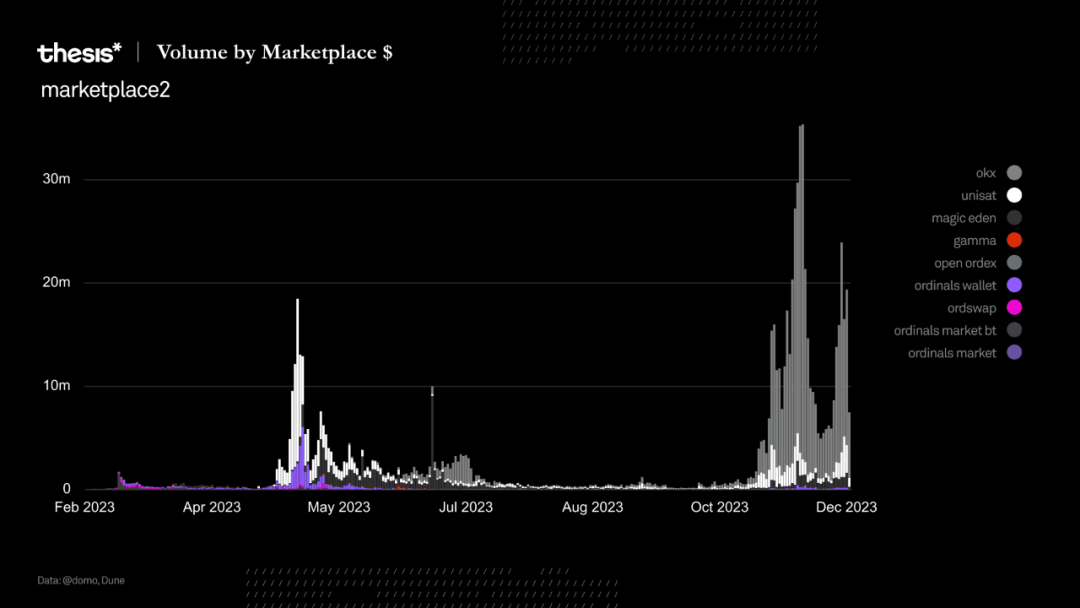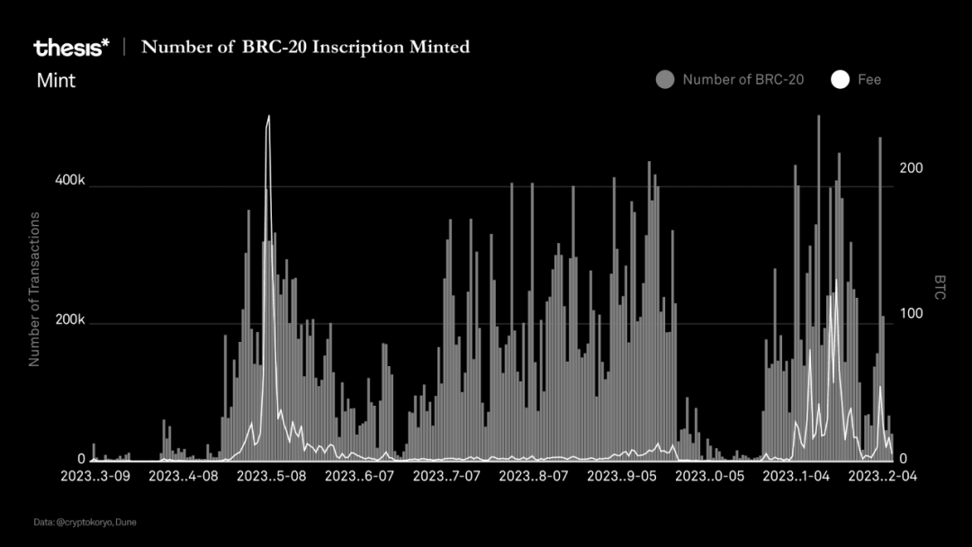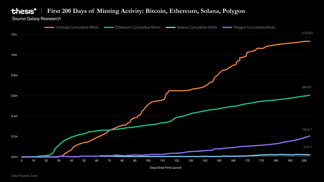 增长迅速。今年 2 月,Yuga Labs 宣布推出首个基于 Ordinals 铭文的比特币 NFT 系列。