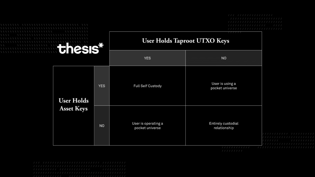 如上所述,Taproot Assets 的保管和所有权不同于比特币上的其他可替代代币。