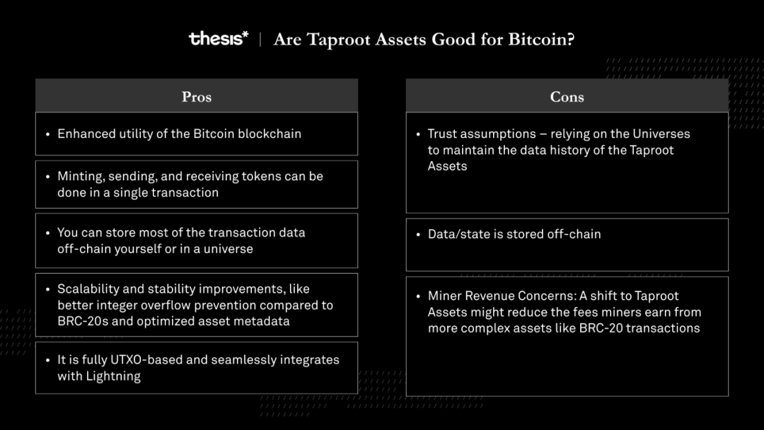 一般来说,我们可以看看 Taproot Assets 如何对比特币有利,并了解升级的一些利弊。