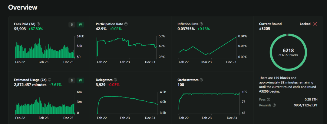 Livepeer 整体的转码业务量稳定保持在平均每周 200 万分钟以上,在 11 月,Livepeer 成功传输了 1130 万分钟的视频。尽管流式传输的分钟数不断增加,但网络上公开的价格竞争使用户使用视频编码的成本效益比两个月(11 月 vs 9 月)前降低了 48% (4.21 万美元 vs 8.27 万美元),这点和 DePIN 飞轮理论一致,即闲置计算之间的竞争将降低用户的成本。