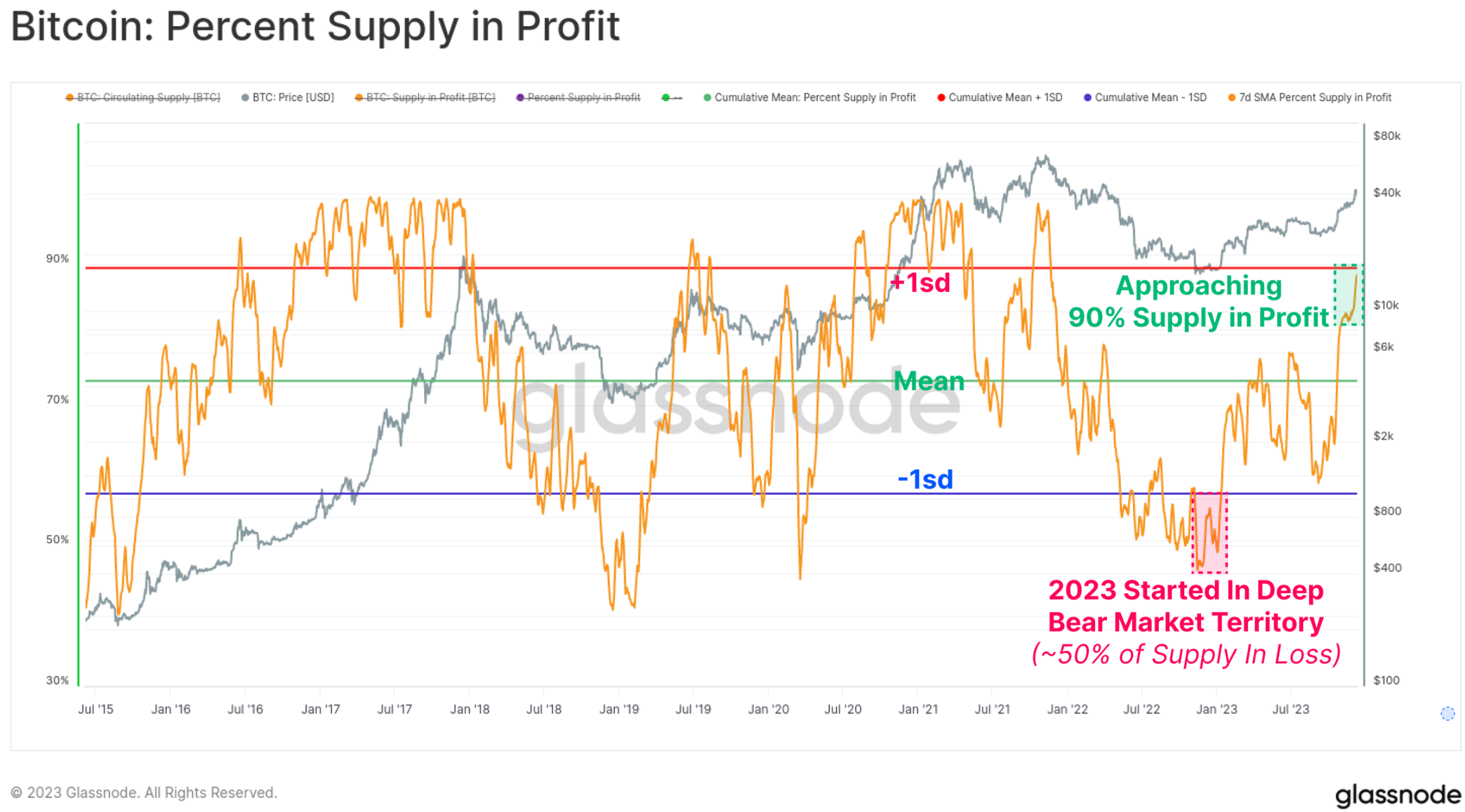 比特币供应目前由长期持有者紧紧持有,大多数投资者现在持有有利可图的比特币。随着 2024 年初推出美国 ETF 的可能性越来越大,以及比特币减半将于 4 月到期,未来激动人心的一年已经做好准备。