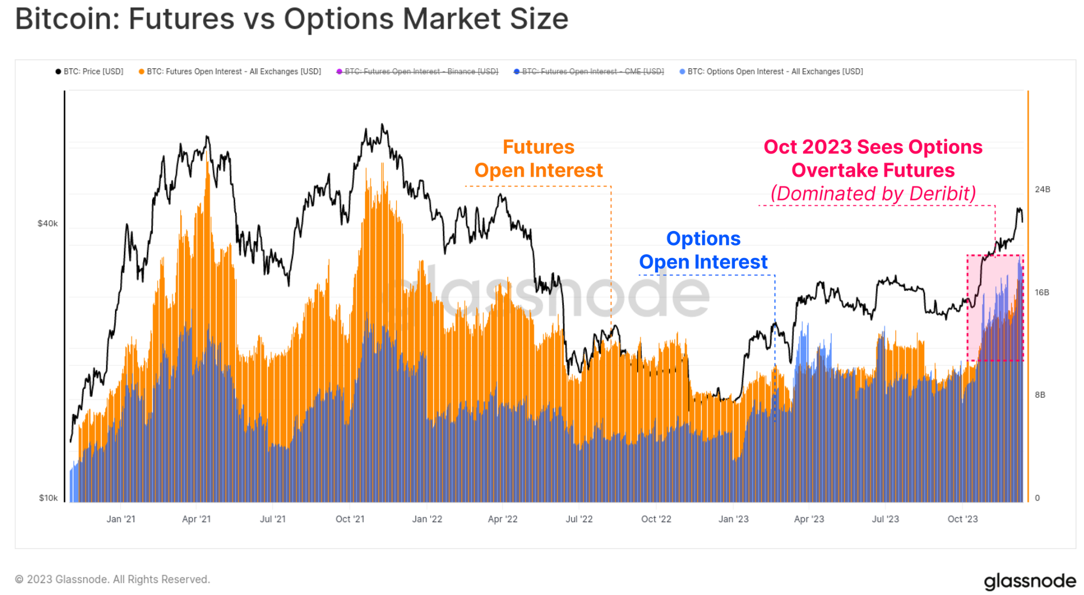 2020-23 年周期的一个显着特征是期货和期权市场成为价格敞口和流动性的首选场所。事实证明, 2023 年是这一成熟过程中的重要一年,因为期权市场的未平仓合约规模已发展到与期货市场相当甚至超过期货市场。