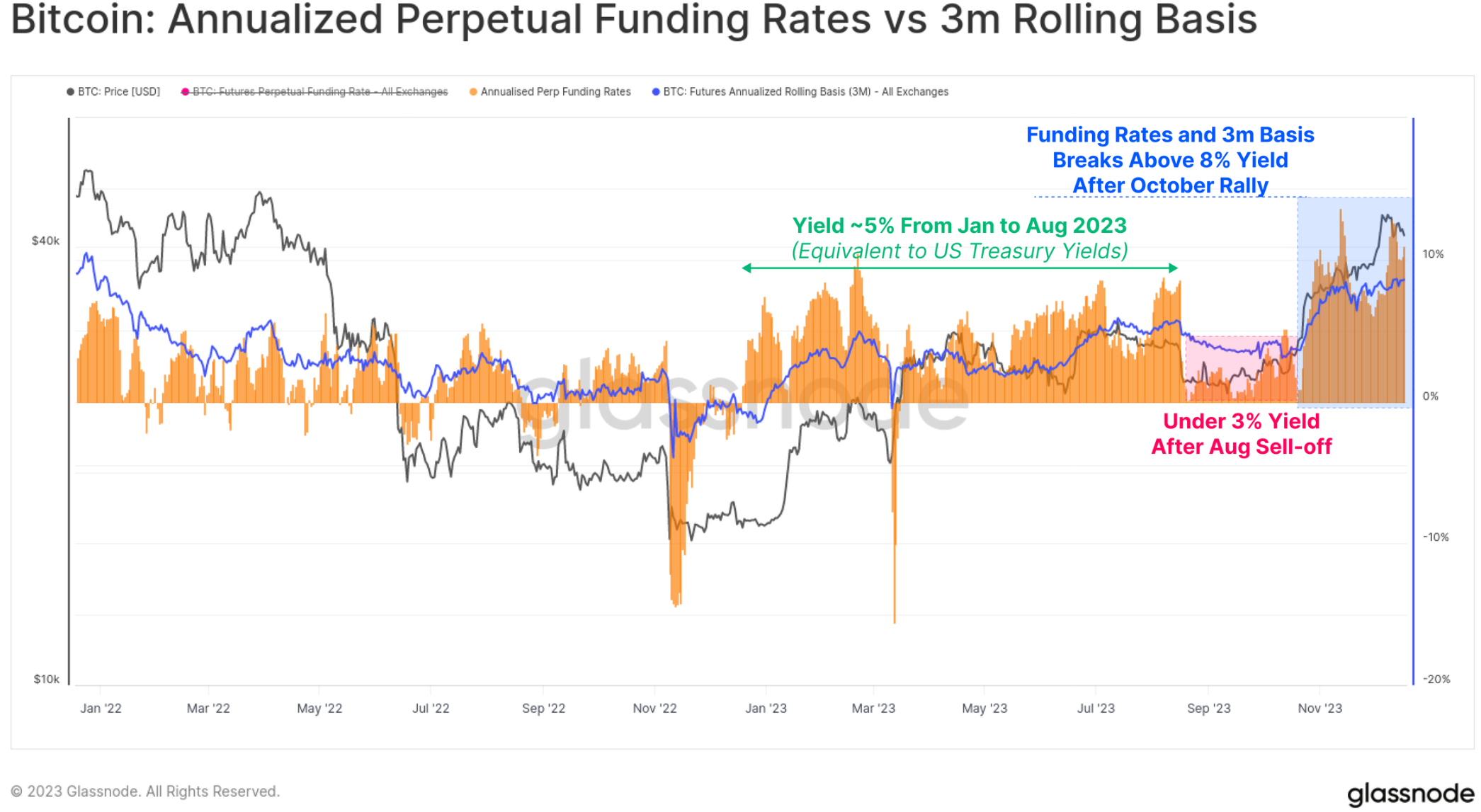 10 月起,收益率突破 8% 。由于期货基差目前维持在高于美国国债 300 个基点的水平,做市商资本现在有动力重返数字资产领域。