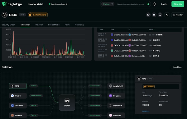 目前 DIMO 的市值超 9600 万美元,其代币为 DIMO,基本全流通,目前价格波动较大,用户交易需注意风险。
