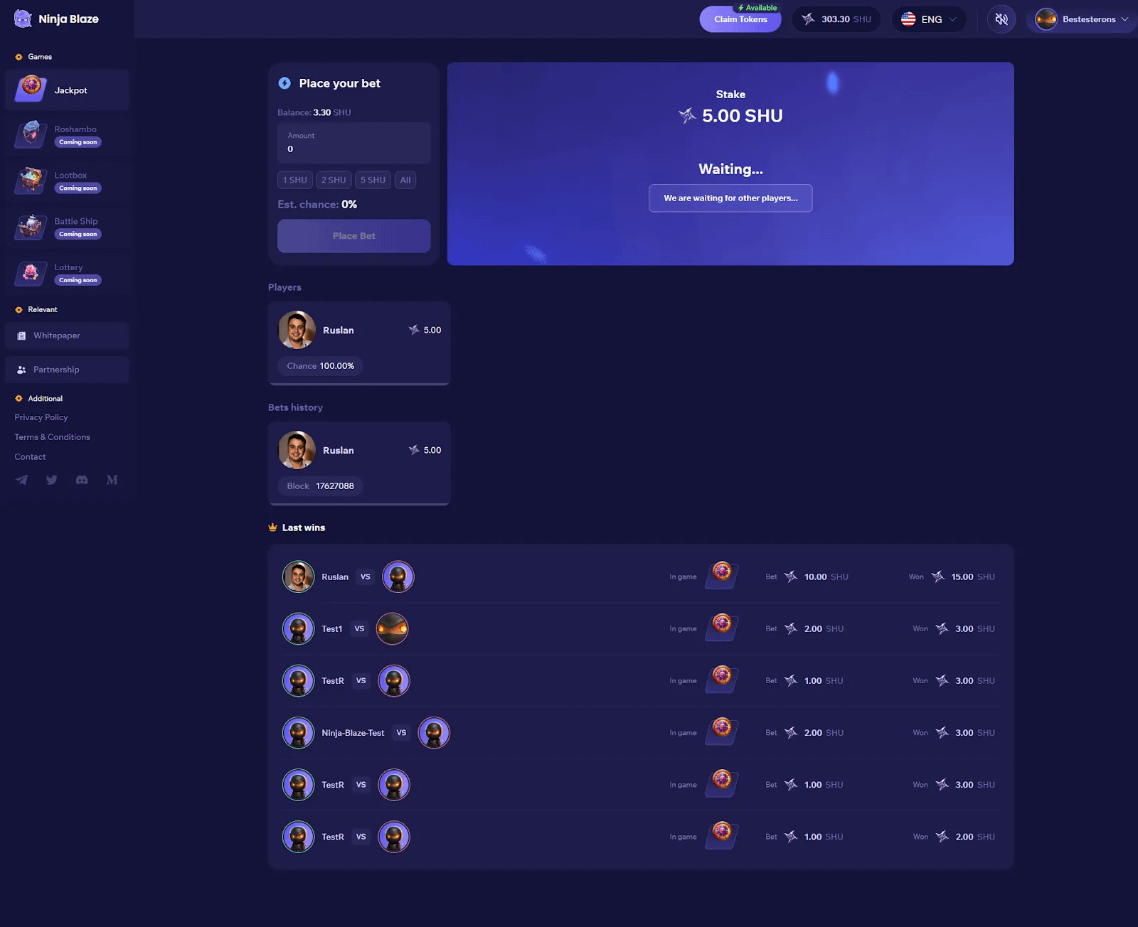 Ninja Blaze 是基于 Injective 区块链的 GameFi 平台。Ninja Blaze 目前在测试网上可用,目前开发了一款名为 Jackpot 的游戏,并且正在开发另一款名为 Roshambo Jackpot 的 PvP 游戏。