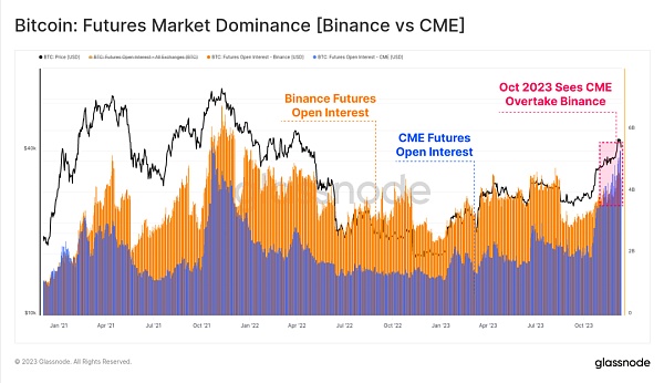 值得注意的是,在期货市场内也出现了主导地位的转变,受监管的芝加哥商品交易平台 (CME) 持有的未平仓合约历史上首次超过离岸交易平台币安 (Binance)。10月份似乎再次成为这一转变的重要时刻,它彰显了着机构资本的涌入。