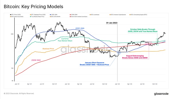 2023年,比特币市场突破了众多技术和链上定价模型,所有这些表现都有助于我们了解其强劲势头。