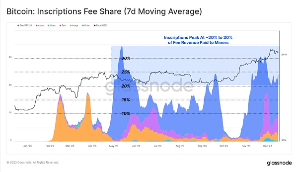 图14:比特币:铭文区块大小占比(7天移动平均)