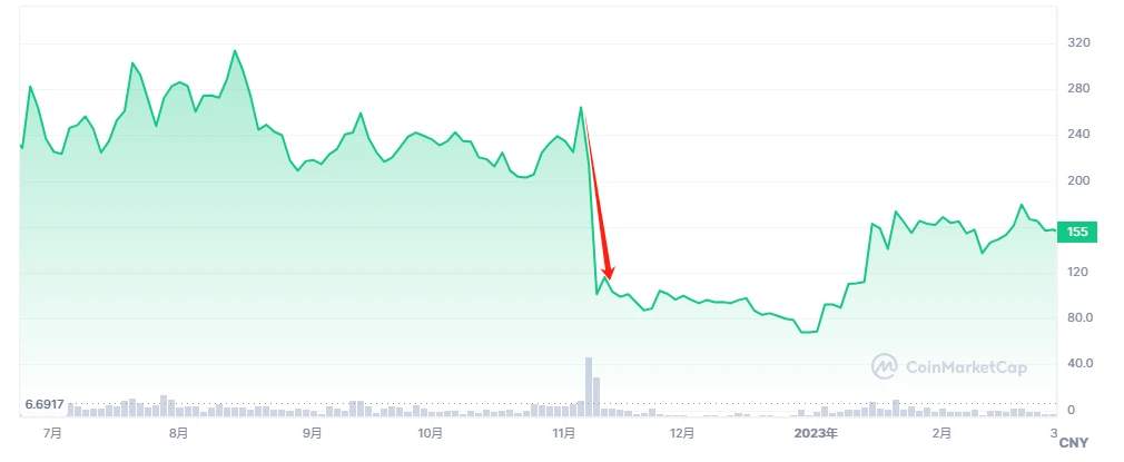 2022 年 11 月 9 日,FTX 暴雷,SOL 几天内暴跌 75% 左右。