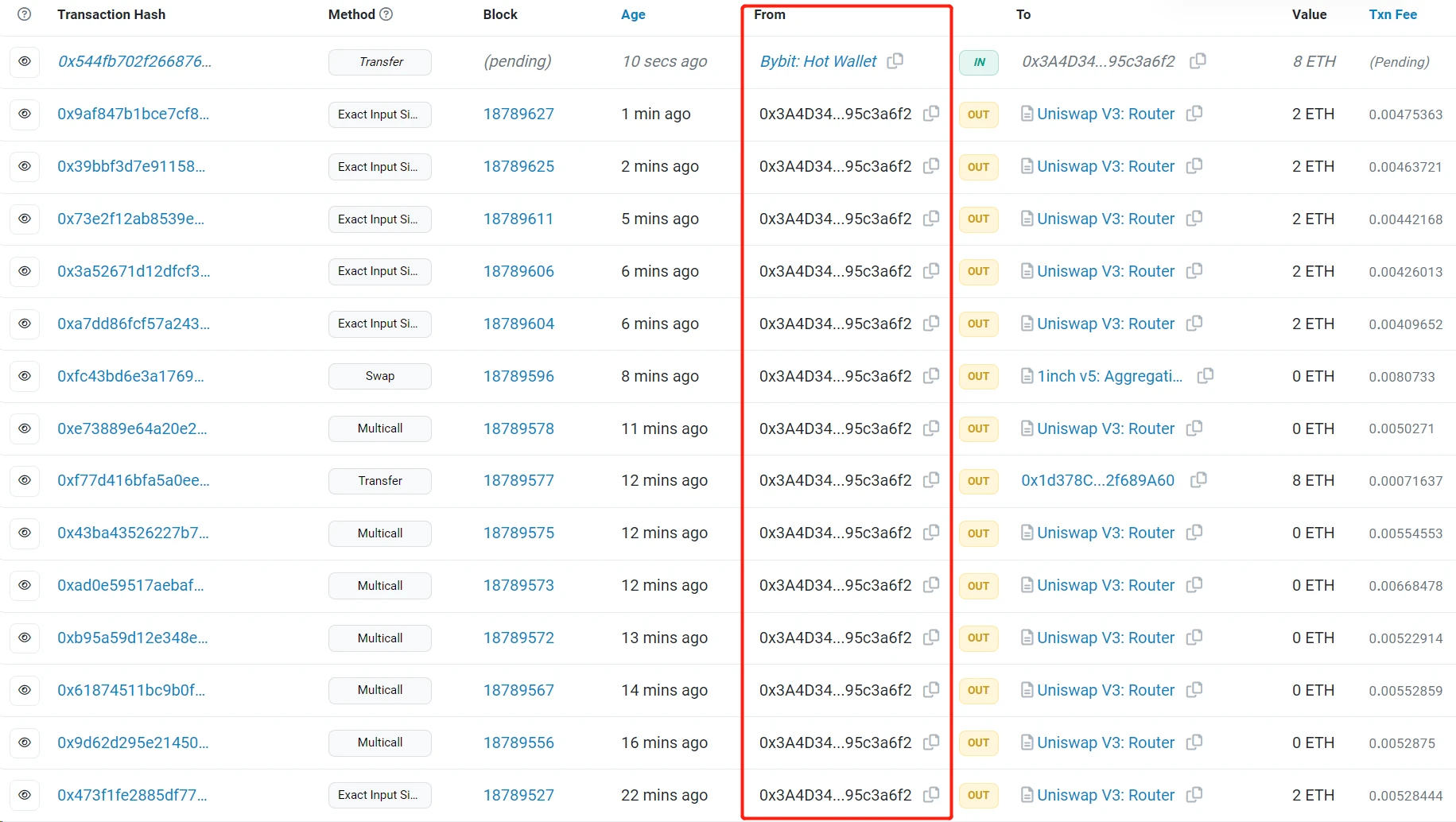 图 2 特定地址的所有交易列表在 etherescan 上是公开的
