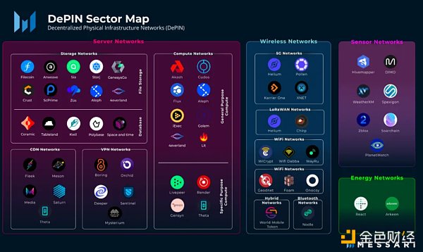 DePIN涵盖了广泛的行业,Messari根据网络提供的硬件、资源、商品和服务将其分为物理资源网络和数字资源网络。