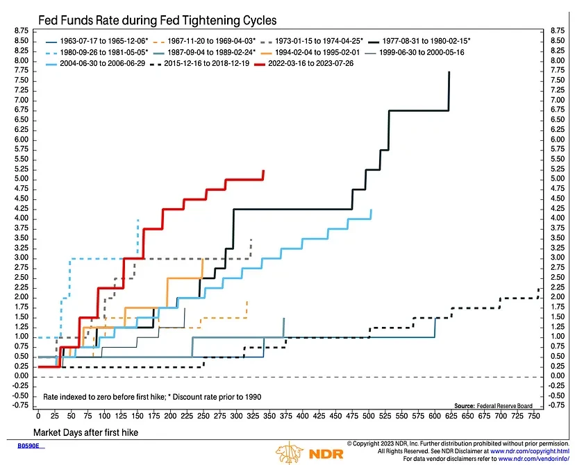 随着疫情后通货膨胀肆虐,拜登让鲍威尔坐下来,并指示他控制通货膨胀。正如你从上面的图表中看到的那样,到 2023 年 3 月,美国国债 2 年期利率从基本上的 0% 飙升到了 5% 。这是由自 1980 年代沃尔克(Paul Volker)任期以来最快的美联储加息行动推动的。