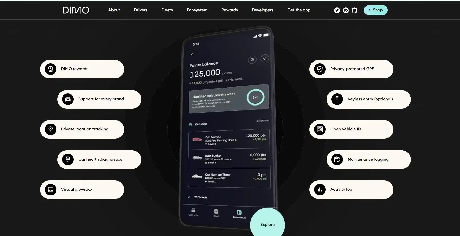 DIMO 是一个去中心化的软件和硬件物联网 (IoT) 平台,它允许用户创建经过验证的车辆数据流以私下与应用程序共享,这可以让用户协商更好的服务,例如汽车融资和保险。