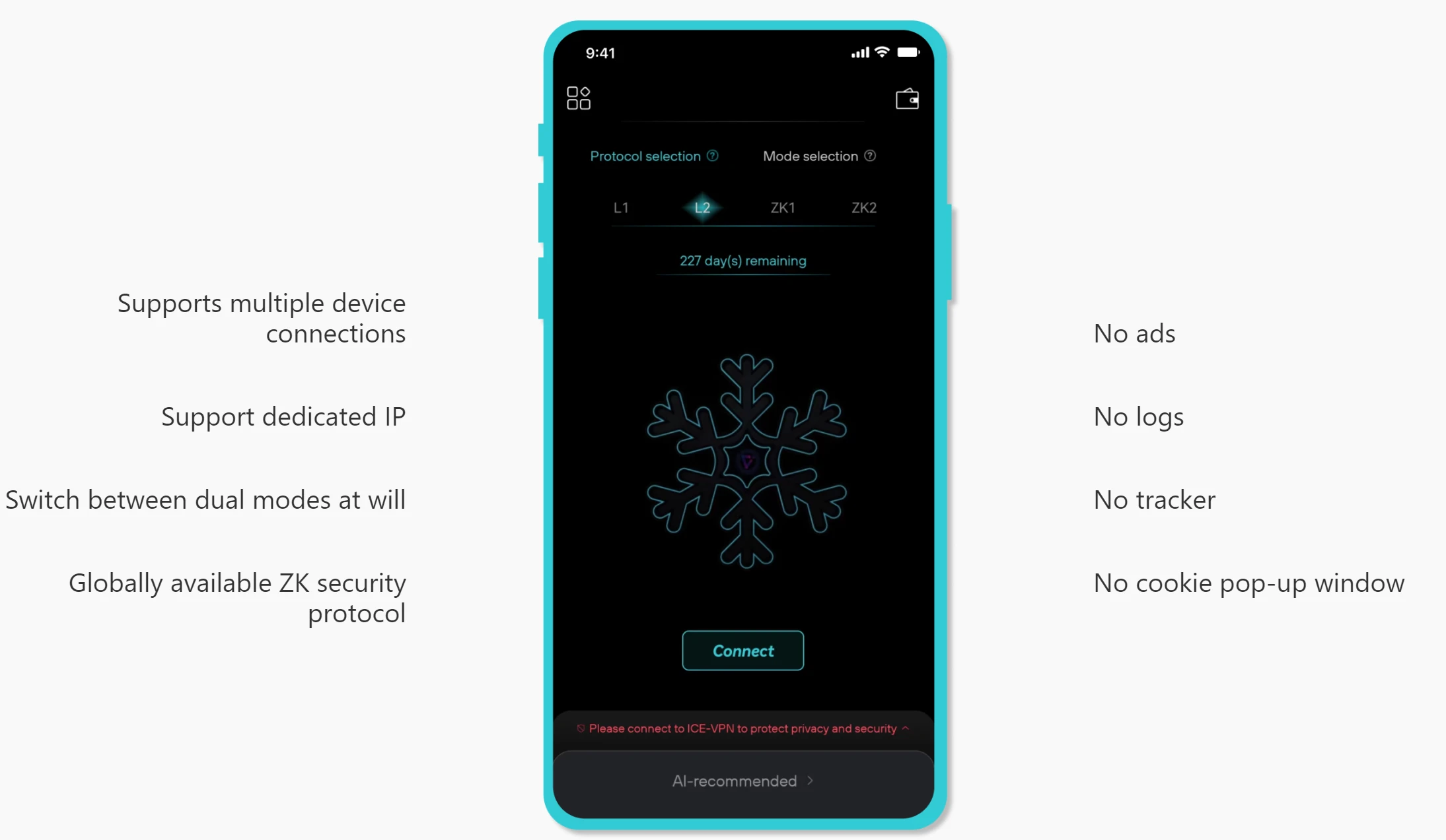 ICE NET 是一个基于零知识证明的去中心化网络隐私基础设施,旨在为所有用户提供可靠、高效的隐私保护网络系统。ICE NET 采用零知识证明(ZK-SNARKs)技术和创新的网络协议 ISN-Protocol,确保所有用户信息在互联网访问过程中得到深度保护。