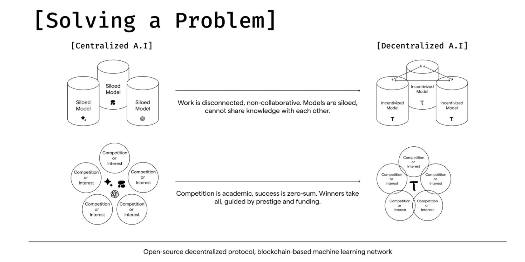 Bittensor 是一个开源协议,专注于 AI 和机器学习。它提供了一个去中心化、可扩展的神经网络解决方案。该协议允许 Bittensor 模型与其他 AI 模型进行数据学习和价值转移,打破了 AI 信息孤岛的障碍。