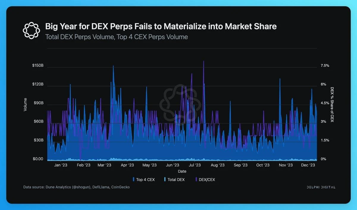 Perp DEX 经历了一年的发展,但市场份额没有增加: