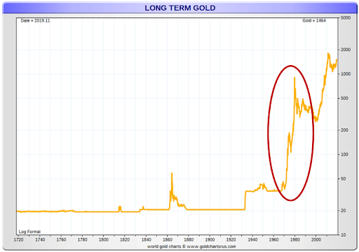在同一时期,尼克松暂停了黄金兑换窗口,导致货币基础快速扩张和黄金价格暴涨。