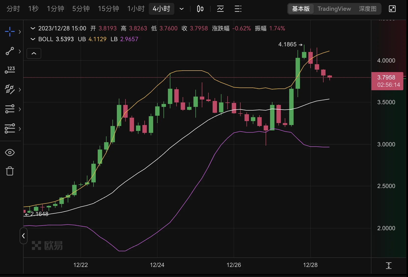 在本轮上涨中,OP 是最为耀眼的一个。虽然今日 OP 稍有回调,但从近几日来看,OP 仍维持了上涨态势。