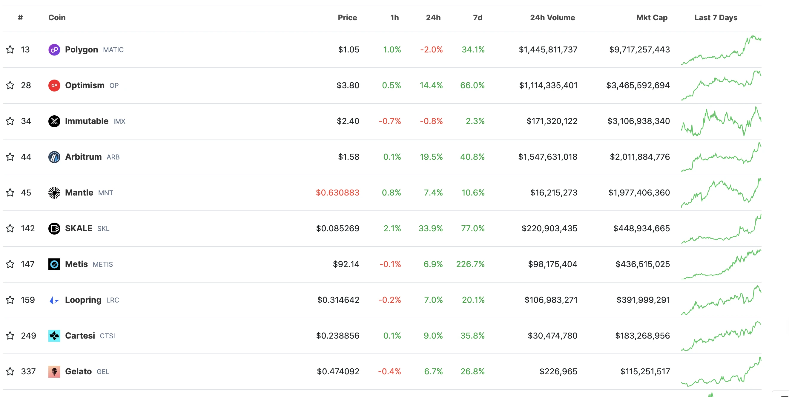 Layer 2 板块正在引领以太坊生态的复苏,Coingecko 数据显示,整个 Layer 2 板块均在近几日创造了可观的涨幅。