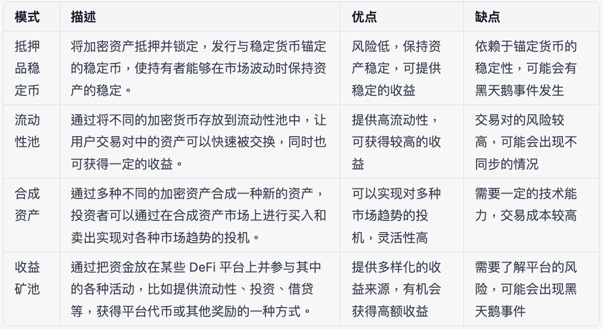 以“Principal Protected Vaults”为主题的产品备受关注。Principal-Protection Vaults是DOV问题的延伸,有望成为下一个创新点,为风险规避型投资者提供了一些生成低风险高回报的方法。这些产品虽然在一定程度上保护了投资者的本金,但仍然存在一定的风险,特别是针对稳定币的汇率风险。此外,这些产品的收益主要来自于治理代币奖励,加大治理代币的奖励可能有助于提高收益,但这种收益是有限的。