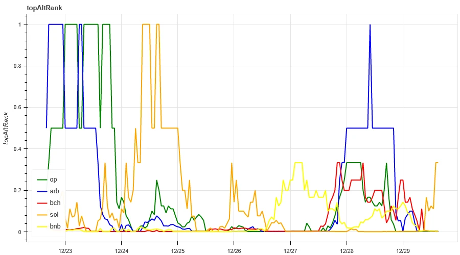 过去一周热度轮动分别的是 arb/op/sol/bnb/bch,。