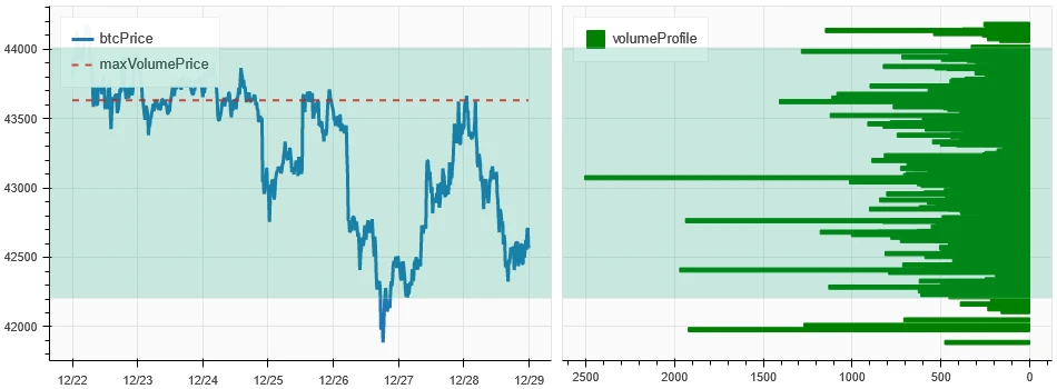 表格显示 BTC 与 ETH 过去一周中每周的密集成交区间