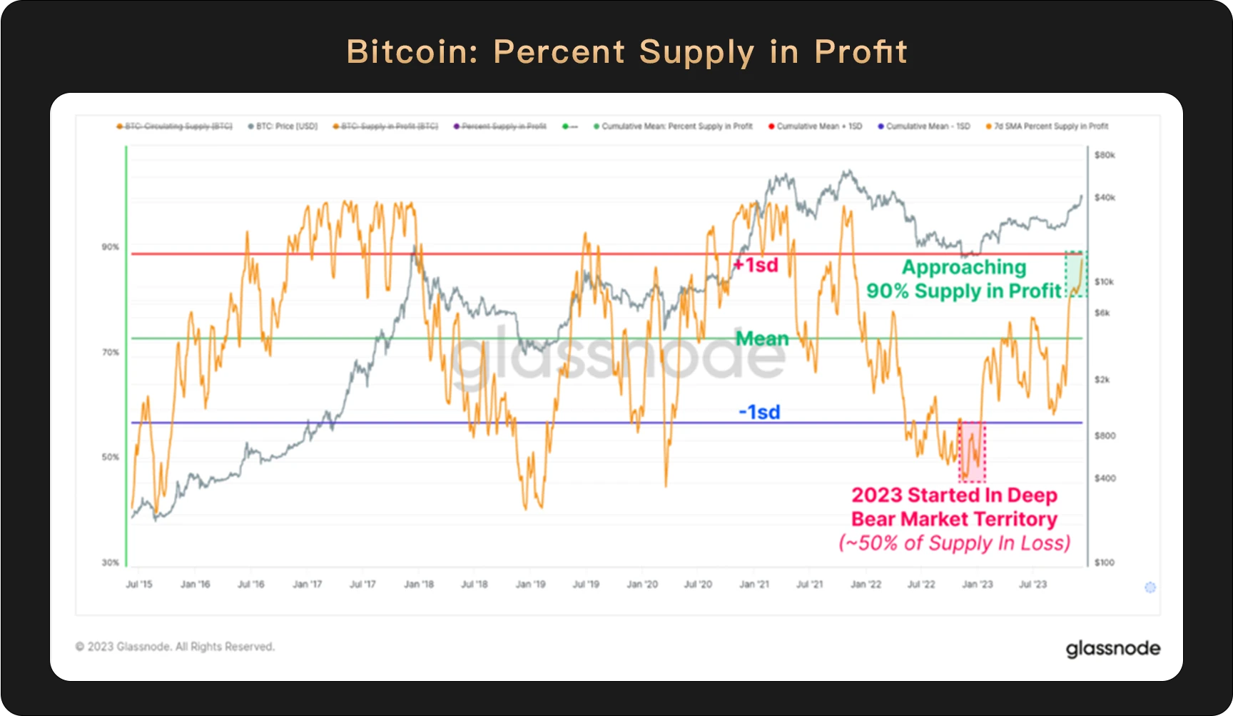 尽管目前已有 9 成的比特币处于盈利状态,但由于利好消息的不断刺激,投资者依然信心十足。