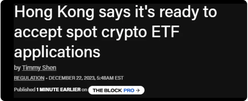 在美国方面传来利好的同时,香港方面也迎来喜讯: 12 月 22 日,香港证监会发布《有关中介人的虚拟资产相关活动的联合通函》与《有关证监会认可基金投资虚拟资产的通函》,并表示“准备好接受虚拟资产现货 ETF 的认可申请”。