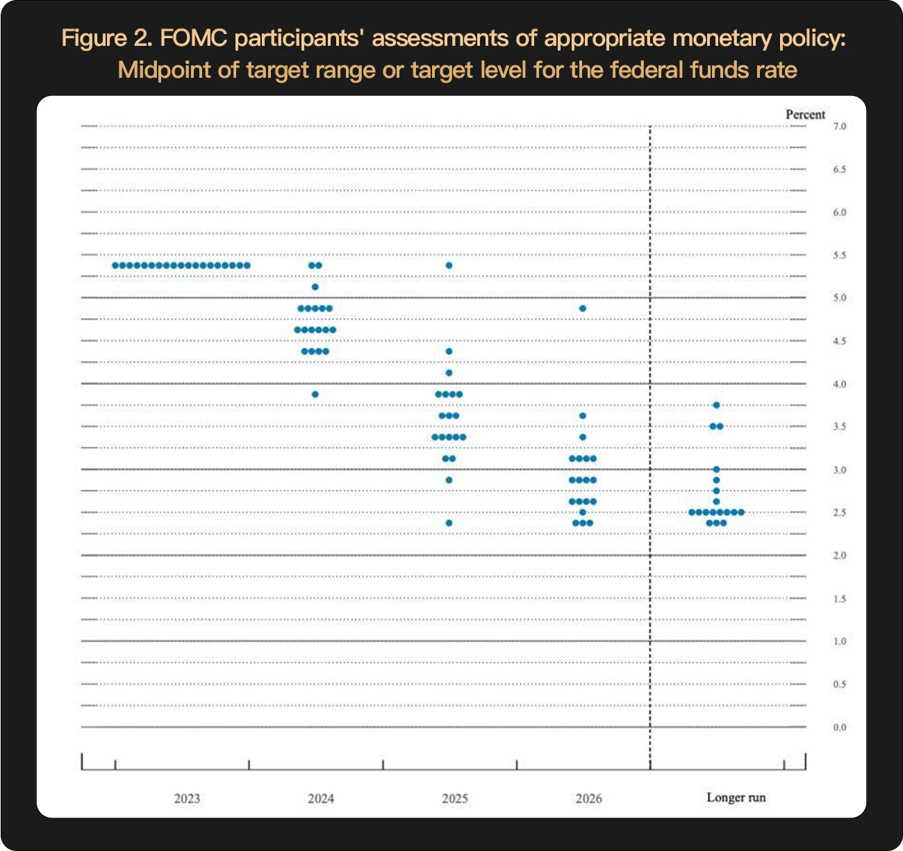 12 月数据再一次夯实了暂停加息的明牌属性,降多少息、何时降息成为市场目前最关注的事情。从目前的点阵图上来看, 2024 年的利率平均预期在 4.6% 附近,相较于目前的 5.25% 至 5.5% 还是有一个可观的降幅的。
