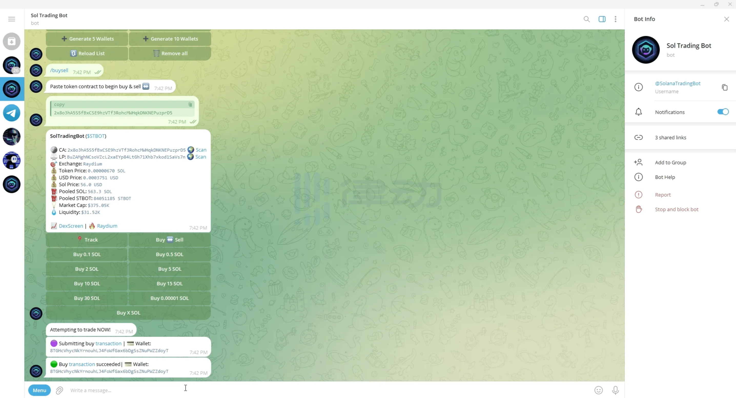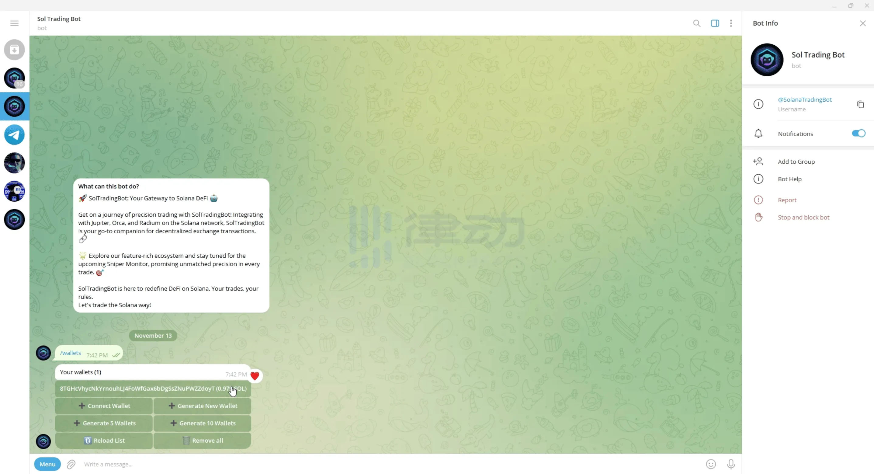Sol Trading Bot 是目前 solana 上的一个交易 + 唯一的狙击手 TG 机器人,集成了 Jupiter、 Orca 和 Radium 三个 dex。