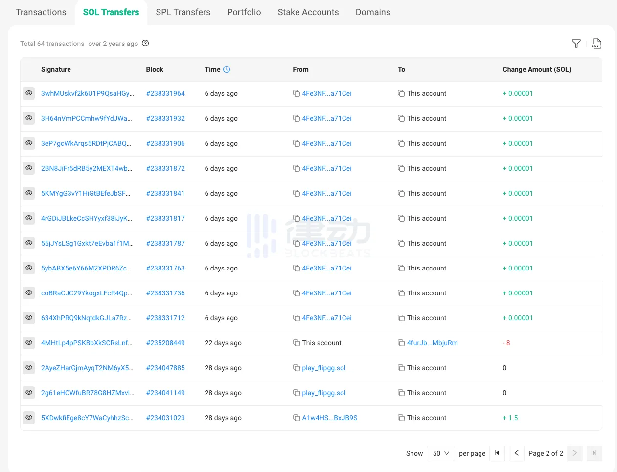 在 solscan 上可以看到,这个地址目前持有的代币还有哪些。需要注意的是,这些代币中有些可能是被空投的,而不是主动购买的,我们可以在 SPL Transfers 中查看交易记录,确认这一点。