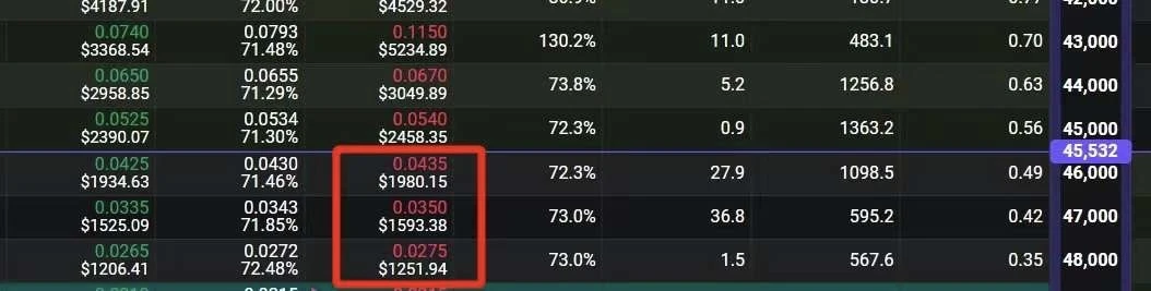 现在如果还不玩 BTC 的末日期权,你还等到啥时候玩末日。盈利高,杠杆大, 1 月 12 日的看涨冲起来。46000 的看涨,现在权利金价格 4.35% , 23 倍杠杆(按头寸,按 delta 是 11.5 倍);我的经验,只要止盈及时,你的预期收益绝对是正的。