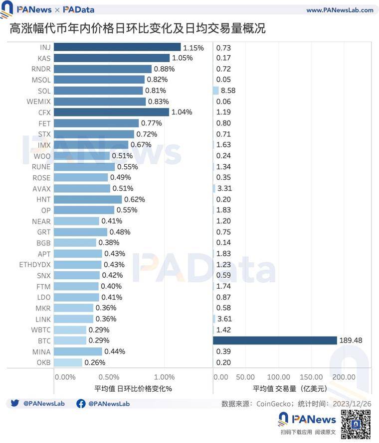 2023 年度 TOP 盘点:公链币领涨 INJ 居首,Lido 锁仓额占鳌头