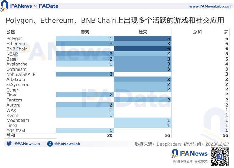 05、多个游戏和社交类新应用表现活跃,Polygon、Ethereum 和 BNB Chain 上出现多个活跃应用