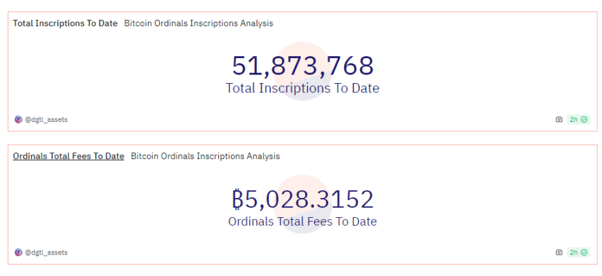 Ordinal 协议概述了一种对聪(比特币的最小单位 sat,代表比特币的一亿分之一)进行顺序编号的方法。一旦获得了 Sat 的序列号,用户就可以将数据刻录到这些 Sats 上以制作数字文物,这是 Rodarmor 相对于 NFT 的最初描述。截至 2023 年 12 月 27 日,Ordinals 铭文铸造累计费用达到 5028 个 BTC。