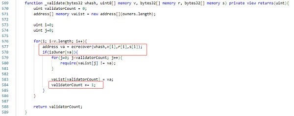 进入签名验证函数(_validate)后,我们可以观察到该函数返回了owner签名的数量,这一信息对于验证交易的合法性和安全性至关重要。
