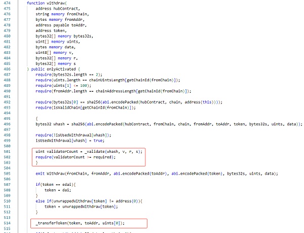 此次事件主要是攻击者 直接调用Orbit Chain: Bridge合约的withdraw函数将资产转移出去。