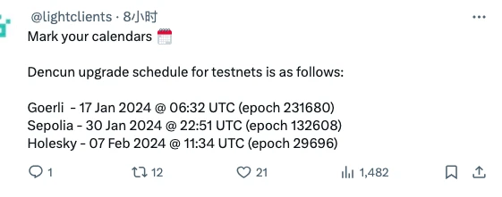 值得一提的是, 在 lightclient 的会议纪要中并未提及主网升级的时间安排,但 ACDE #177 时开发者们曾讨论过最早于 2 月底将该升级部署至主网,考虑到 ACDE #178 并未推迟测试网升级的时间安排,理想状态下我们仍可保持该时间预期。