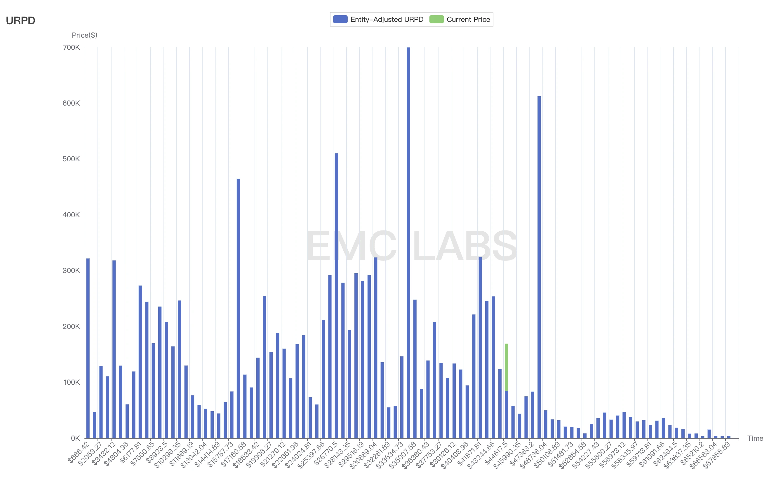 这些数字呈现出典型的修复期群体特征:长期投资者持续积累浮盈,而短期投资者则热衷于不断兑现利润。而不断修订的短期投资者浮盈事实上为市场清除了短线大幅下跌的动力。EMC Labs 认为:从持仓结构和盈利压力上来看,虽然 BTC 价格经历了大幅上涨,但市场内部并不存在太大的下跌动力。