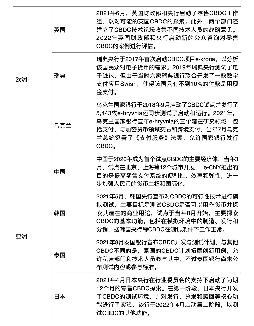 整体来看,CBDC 不仅能够促进金融服务行业更有效、成本更低和 24/7/365 的支付,而且还将有利于所有相关司法管辖区的跨境交易和跨境经济,比如欧洲央行已经确认 CBDC 能够在线上支付和点对点交易上得到较好应用,其他应用角色可能包括纳税、福利支付收入和交易支付。