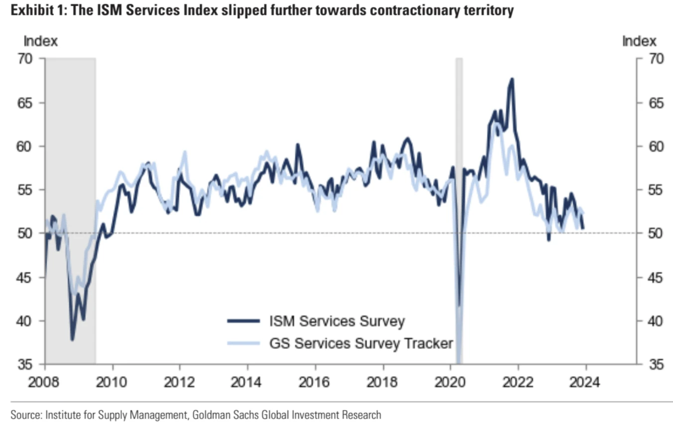 对于美联储利率期货定价来说,NFP 数据公布后, 2024 年降息价格从 135 个基点跌至近 125 个基点,在 ISM 服务公布后飙升至 145 个基点以上,但在收盘时又回落至 135 个基点,显示市场对美联储定价没有变化。
