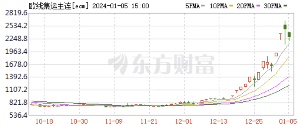 欧线集运期货距离 12 月初已经涨了 3 倍: