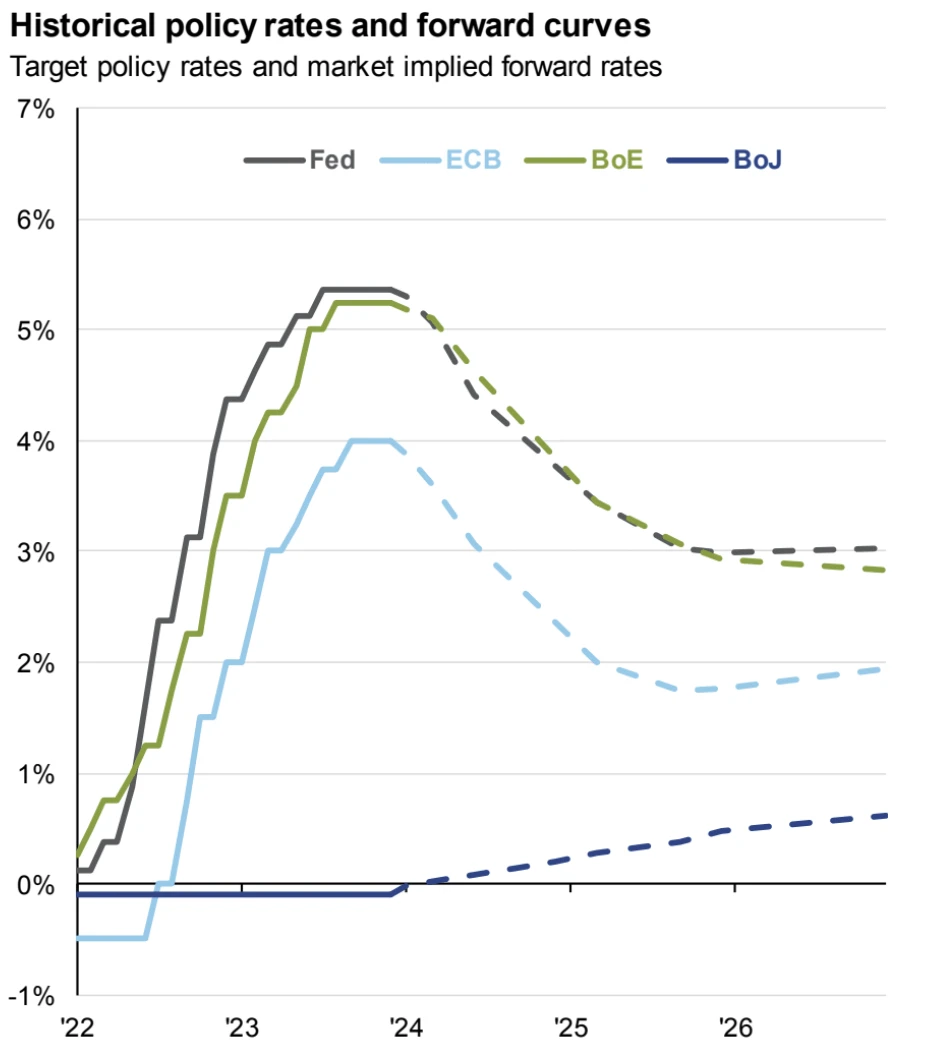 全年降息幅度市场预期仍有 149 bp,远高于 Fed 预期的 75 bp