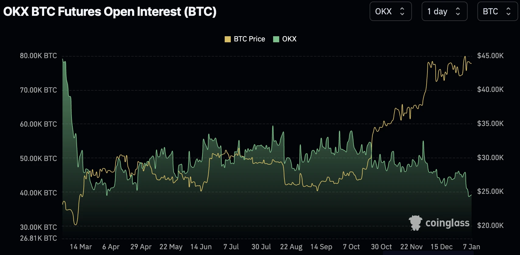 加密货币市场上周三出现意外跳水,这让很多加密货币交易所的期货持仓量(BTC 本位)大减,但这没有影响 CME 的持仓量,这似乎是个 ETF 即将通过预期下比较积极的信号: